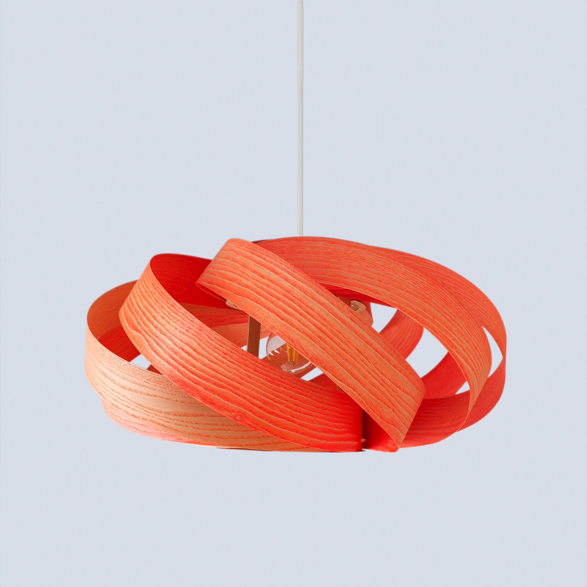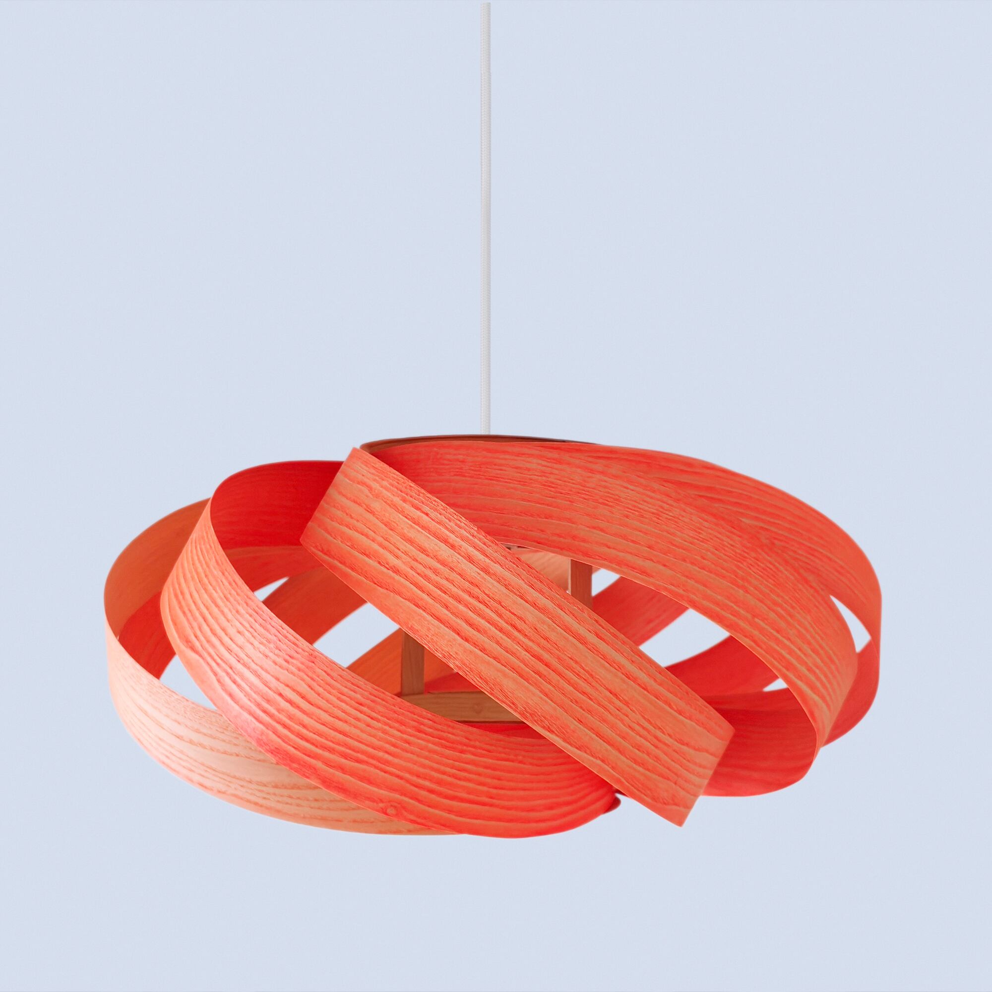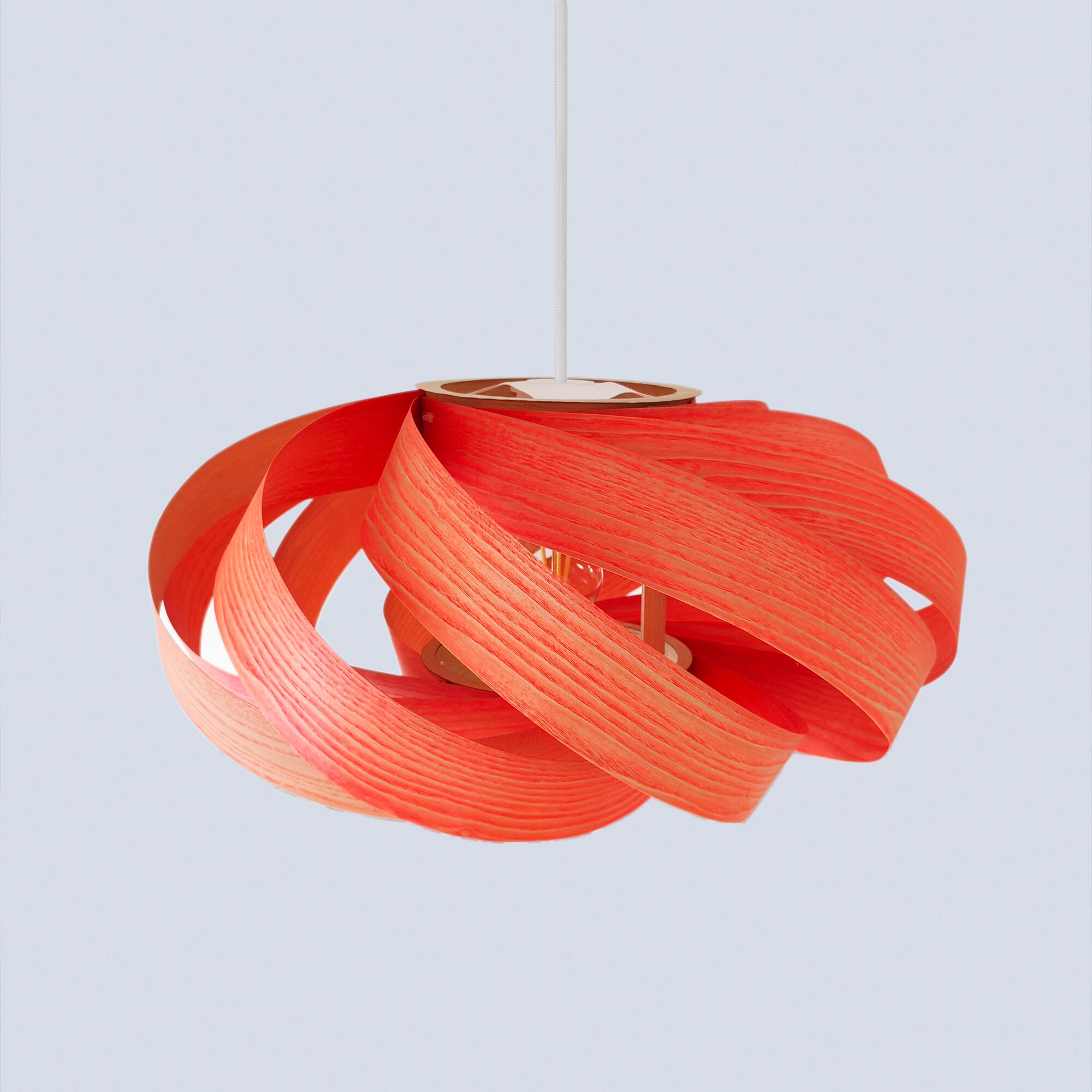 このランプは無垢材から使用されたツキ板であり、自然の美しさと個性を生かしたデザインとなっています。木目や質感の特性上、一部のツキ板にはわずかな曲がりの違いが見られることがあります。これらの違いは欠陥ではなく、天然素材ならではの特徴であり、すべてのランプが唯一無二の作品となる証です。この製品は組み立てられた状態で販売されます。