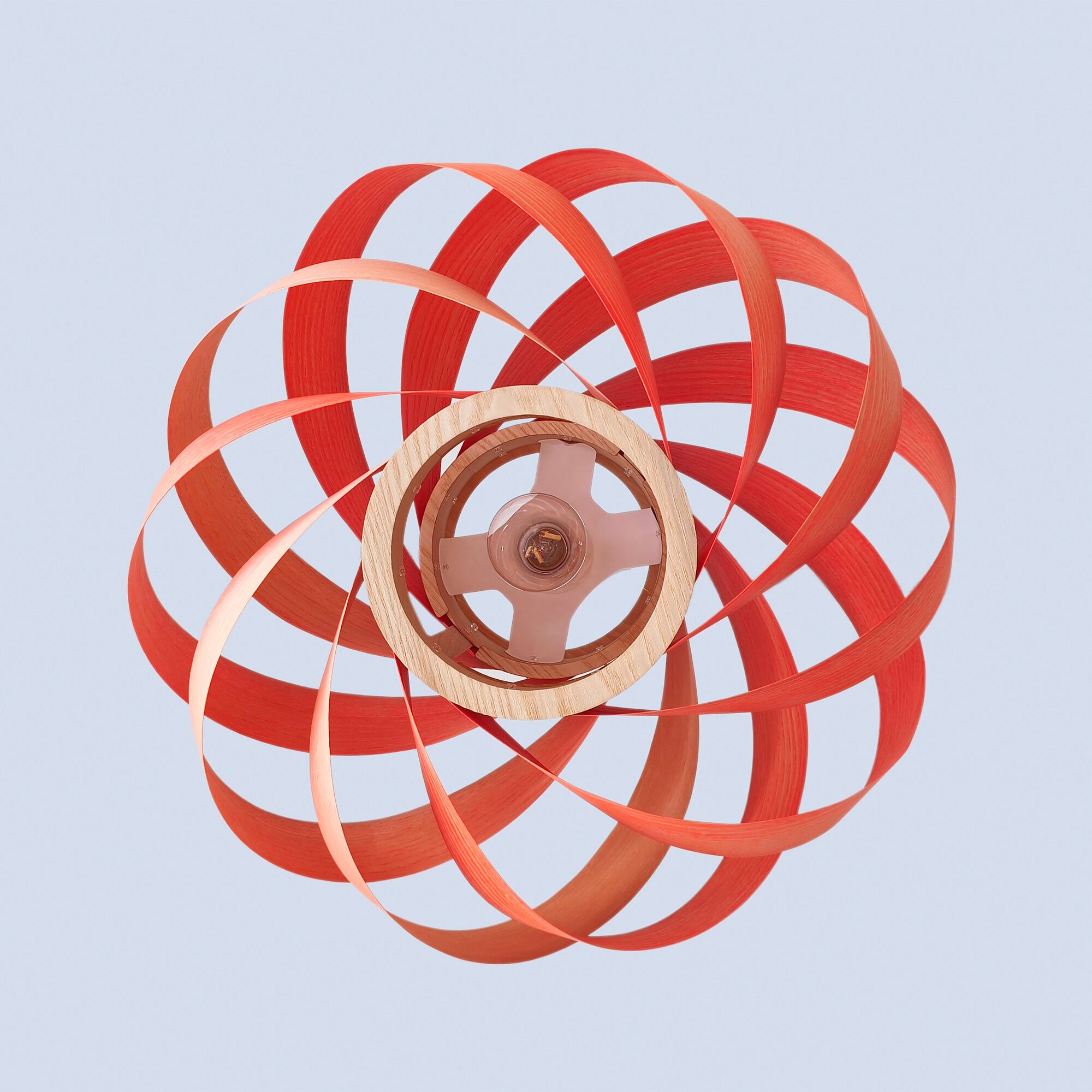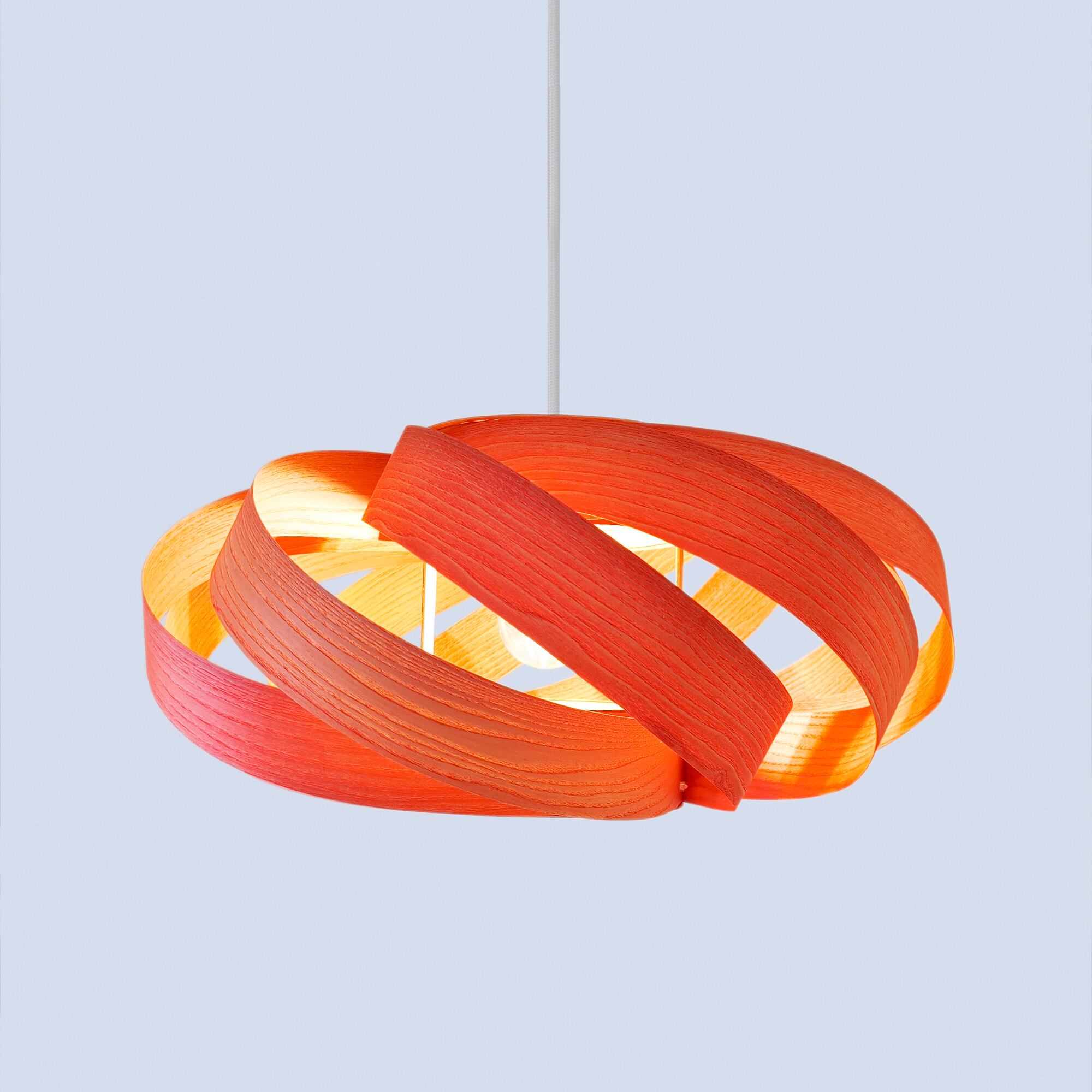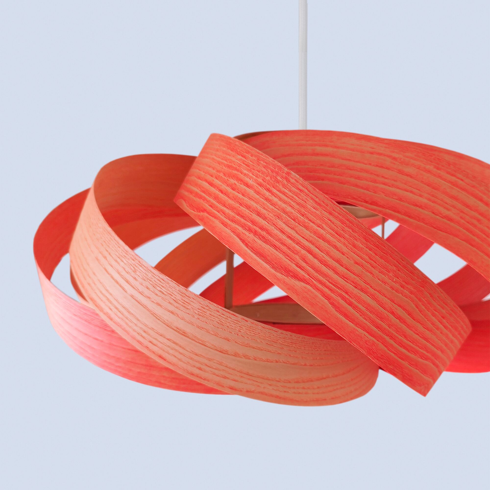 このランプは無垢材から使用されたツキ板であり、自然の美しさと個性を生かしたデザインとなっています。木目や質感の特性上、一部のツキ板にはわずかな曲がりの違いが見られることがあります。これらの違いは欠陥ではなく、天然素材ならではの特徴であり、すべてのランプが唯一無二の作品となる証です。この製品は組み立てられた状態で販売されます。